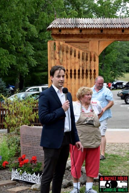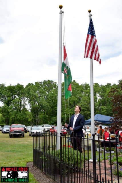A washingtoni magyar nagykövetségről megérkezett Dr. Rada Péter kongresszusi összekötő diplomata, aki a zászlófelvonás előtti rövid mondataiban kifejezte a megtiszteltetés és a megbecsülés érzését, hogy ezt itt és ő teheti meg.
