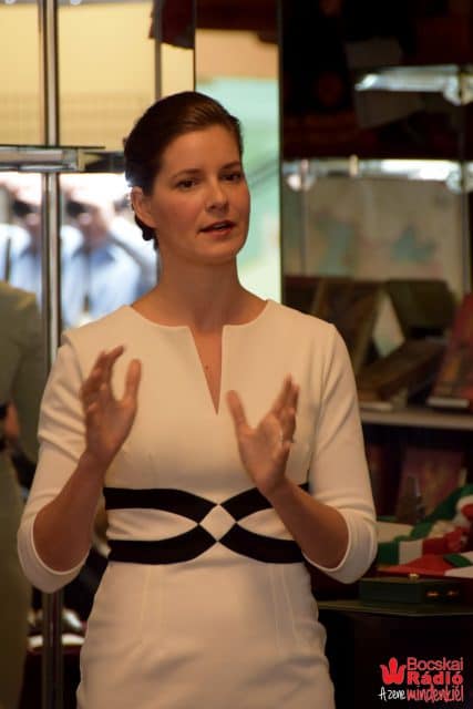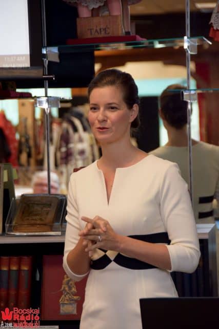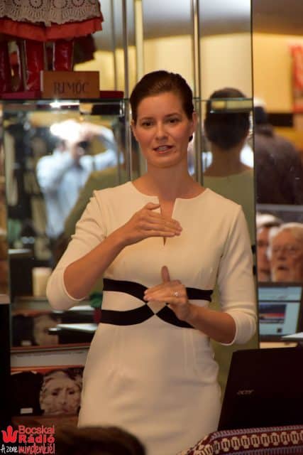 A kávészünet után következett Smith Lacey Anna, a Hungary Initiatives Foundation igazgatójának előadása. Smith Lacey Anna ismertette a Hungary Initiatives Foundation tevékenységét. Négy kiemelt támogatási projektjeik vannak, az első által magyar diákok posztgraduális képzését támogatják világszínvonalú amerikai egyetemeken. A második programjuk az Amerikai Magyar Koalíció gyakornoki program. A harmadik kiemelt programjuk a Memory project, amely az ’56-os emigráns interjúkat archiválja. A negyedik programjukkal a diaszpóra szervezeteket és közöségeit támogatja. Kulturális programok létrehozásának és megvalósulásának támogatására pályázhatnak $ 5000 összegik. Smith Lacey Anna bejelentette a HIF 2017 kulturális nagykövetét, György Ádám zongoraművészt.