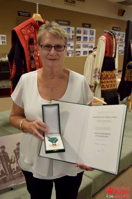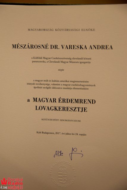 Dömötörffy Zsolt interaktív és megragadó előadása után, Dr. Bencsik Zita főkonzul asszony, a Diaszpóra Értekezlet hivatalos zárása előtt Magyar Érdemrend Lovagkereszt díjat adott át Mészáros Andreának, a magyar közösség és cserkészetért tett önzetlen munkájáért.
