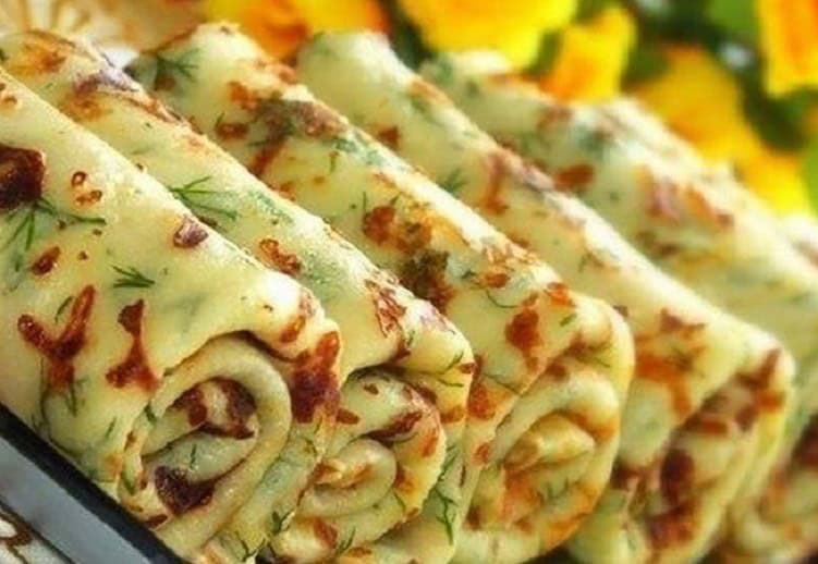 Mossuk meg a kaprot majd vágjuk apróra. Tegyük a tojásokat egy tálba, sózzuk meg és verjük fel, adjuk hozzá a cukrot majd kicsi továbbverés után a tejet és a már kihűtött, olvasztott vajat. Keverjük a lisztbe a sütőport és keverjük a tojáshoz. Amikor jó palacsintatészta állagú lesz, szórjuk bele a reszelt sajtot, a kaprot és a zúzott fokhagymát. Öntsünk forró serpenyőbe kevés olajat és süssük ki a palacsintákat a megszokott módon.