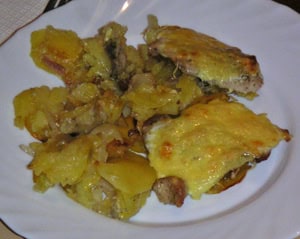 Sajtos-tejfölös-burgonyás-tepsis hús (maradék húsból)
