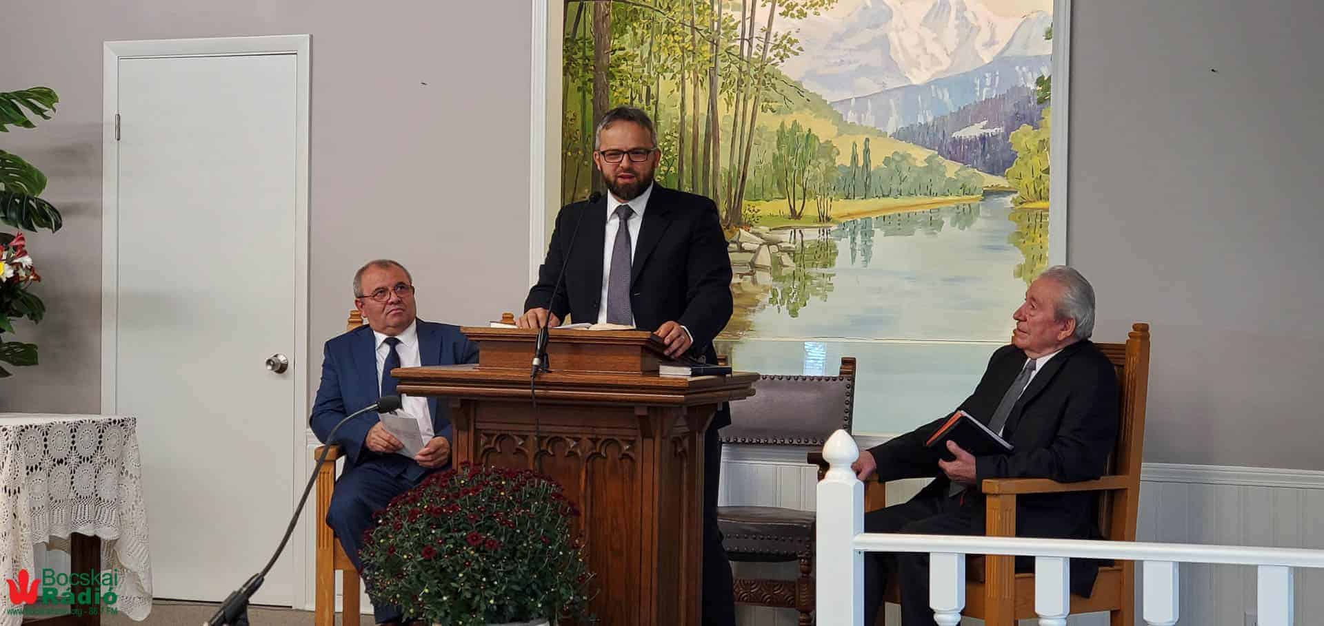 A programfolyamot Kulcsár Sándor nyugalmazott lelkipásztor, az Észak-Amerikai Magyar Baptista Szövetség (ÉAMBSZ) tiszteletbeli elnöke vezette. Igét hirdetett Dr. Gergely István, a New York-i magyar baptista gyülekezet lelkipásztora, az ÉAMBSZ-elnöke. A Péter apostol első levelének 5. részéből az első 11 verset olvasta fel. Beszédében az egyházi elöljárók példás magatartását részletezte és állhatatosságra buzdított.