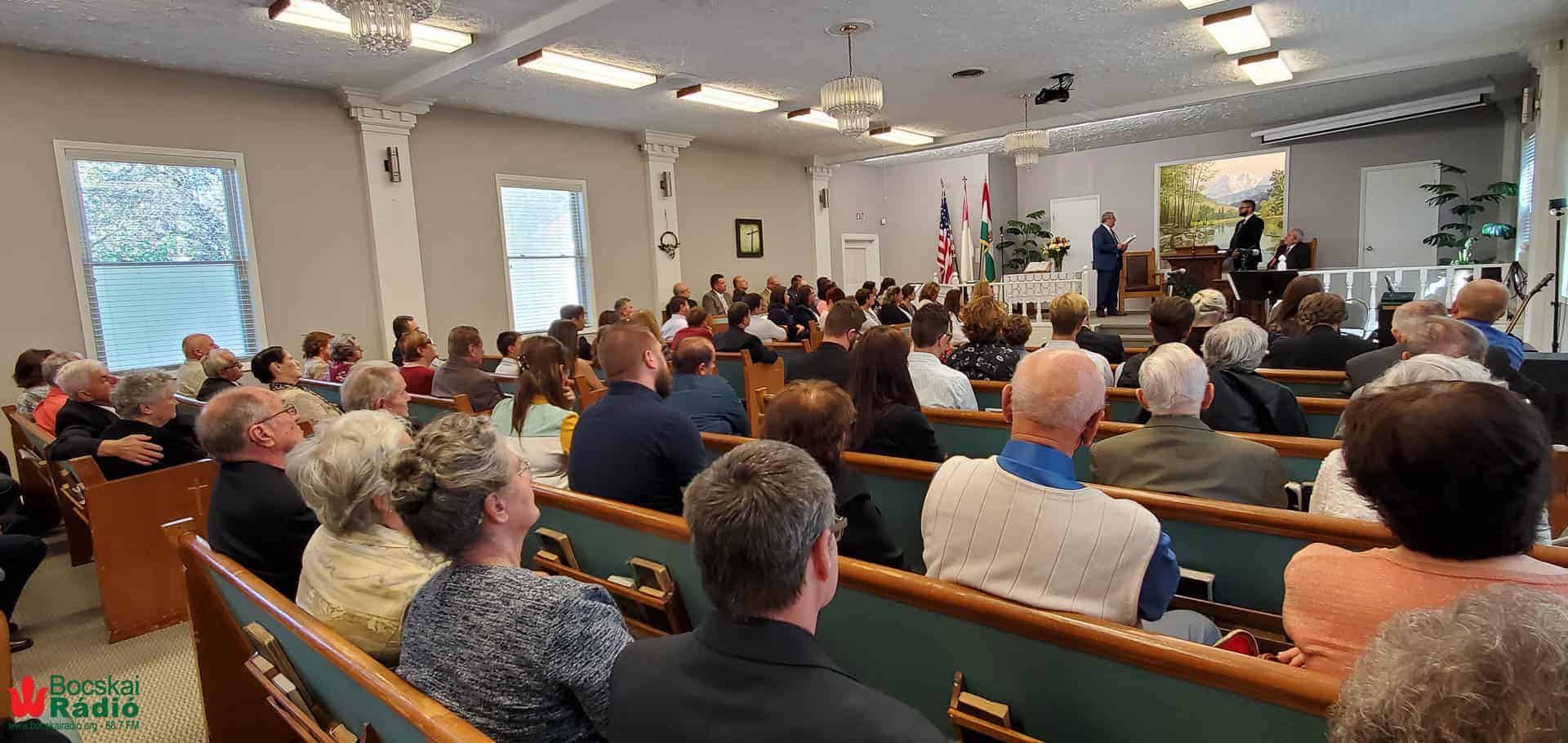 Tíz órakor megteltek az imaház padsorai a helybeli gyülekezet tagjaival, valamint a chicagói, detroiti, New York-i vendégekkel, sőt a távoli Texasból is érkezett egy család. A megjelenteket Lakatos Csaba elöljáró köszöntötte. Az áhítatott Kulcsár Sándor, a chicagói magyar baptista gyülekezet diakónusa vezette – „Örvendezem, amikor azt mondják nekem: Menjünk el az Úr házába!” – a zarándokénekek egyik legszebbike, az Úr házába induló és a közösségbe megérkezők öröméről szóló 122. Zsoltár alapján.