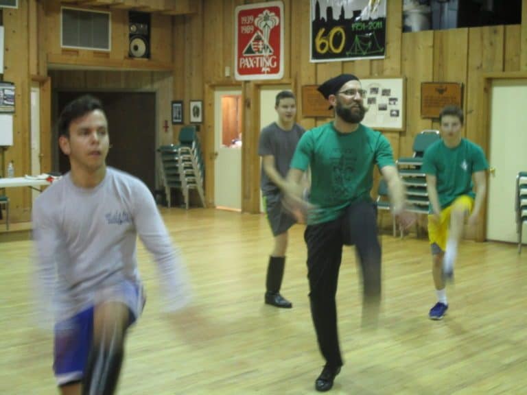 A táncpróbán is érezhető a folyamatos erőlködés, mert bizony egész héten angolul beszélnek, s ilyenkor regős próbán kötelezővé teszik a magyar nyelv használatát. Szinte észrevétlenül csúszik ki egy-egy angol mondat, de ezt ők próbálják elfolytani, s az angolul beszélőket bizony megregulázzák egy-egy fekvőtámasszal vagy más gyakorlattal, hogy figyeljenek arra, hogy tudatosan használják a magyar.Ezt én is alá tudom támasztani, hiszen ennek szemtanúja voltam a próbán, amikor Pigniczky Bendegúz megérkezett, s ékes angolsággal fordult a csopothoz. A büntetés ilyenkor mindenkinek szól, s pillanatok alatt azt vettem észre, hogy a fiúk már nyomják is kivétel nélkül a fekvőtámaszt.