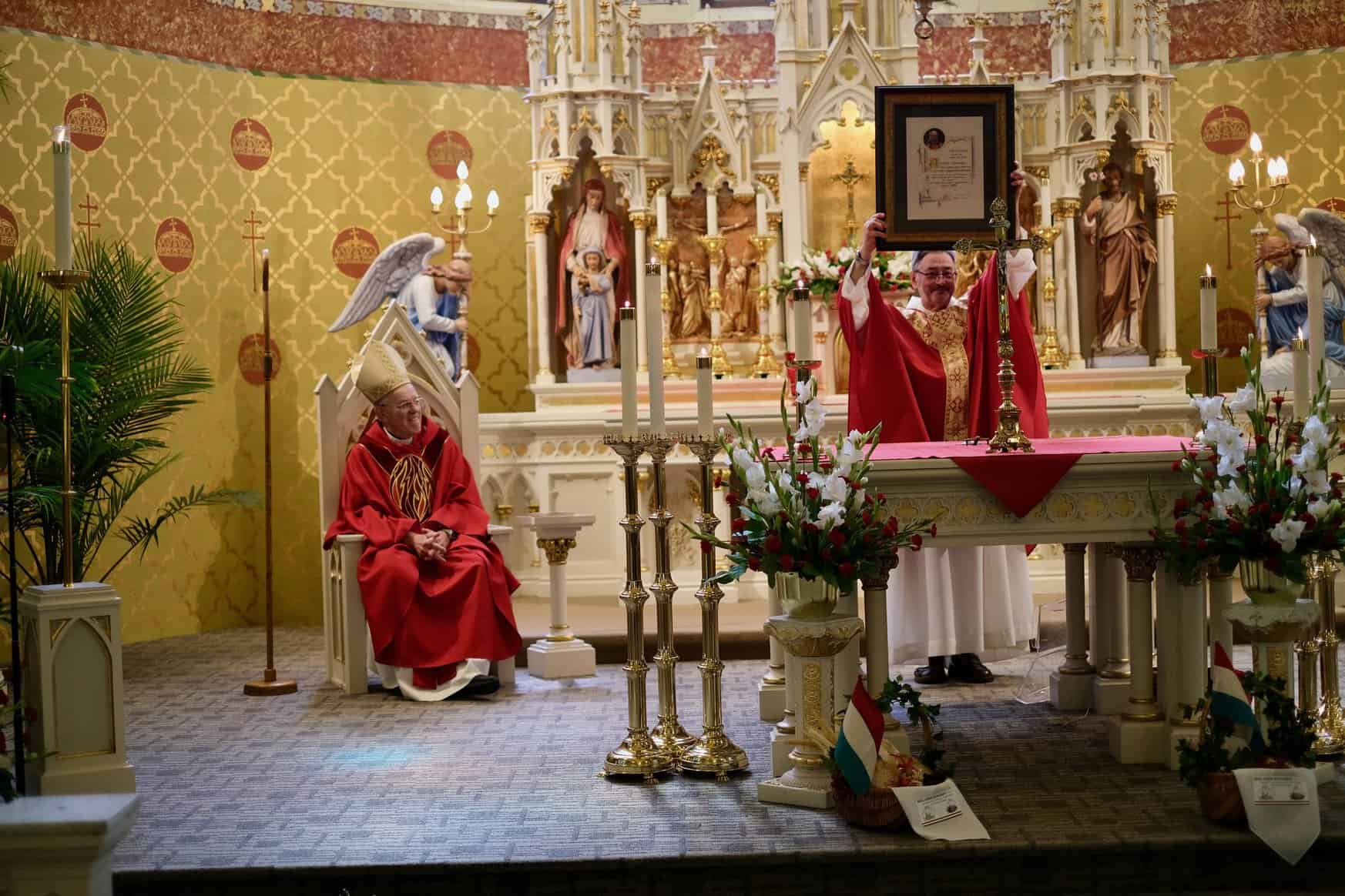 Az ünnepi szentmise főcelebránsa Donald F. Hanchon detroiti segédpüspök volt, és részt vett az eseményen Bakondi Bálint János, Magyarország Chicagói Főkonzulátusának elsőbeosztottja. A templom falára új emléktáblát helyeztek el az 1956-os hősök tiszteletére, amely a Stubits család adományának köszönhető. „1956 mindig fény a történelmünkben. Ezt szimbolizálja, hogy a templom kivilágítása teljesen megújult: Krisztus a fény, mi pedig az Ő árnyékában élünk” – fogalmazott a detroiti magyar plébános.