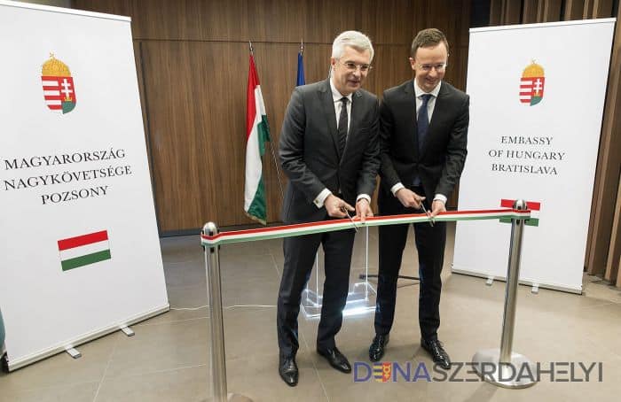 A magyar diplomácia vezetője köszöntőjében rámutatott: a most átadott új épület végre méltó módon fejezi ki, hogy mit gondol Magyarország a Szlovákiával való kapcsolatáról, azt, hogy olyan barátként és fontos szövetségesként tekint rá, amelyhez “félmillió szállal” és olyan sikertörténetekkel kötődik”, mint a V4.