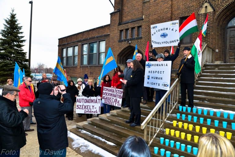 Marosvásárhelyen hétfőn harmadik alkalommal újra hangot adtak követeléseiknek a székelyek. Clevelandben is harmadjára álltunk ki székely testvéreink mellett. A szimpátiatüntetésen hetven ember gyűlt össze, amiért nagyon hálásak vagyunk. Különösen köszönjük annak az öt székely testvérünknek, akik Michiganből három órás vezetéssel érkeztek meg, hogy részt vegyenek a megmozduláson.