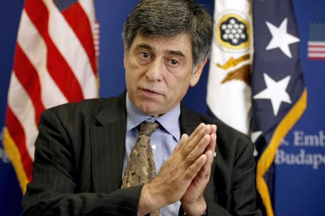 Goodfriend visszaelt diplomaciai megbizatasaval es Ragalmazta a hivatalosan megvalasztott Magyar Kormany Tagjait! Efele viselkedesre Meg nem volt pelda! Egy Uber baloldali Diplomata aki Obama szekeret huzza! Nagy hiba volt mar regen Ki kellet volna Rugni az orszagbol! Isten Vele es Remellem hogy nem ter vissza Magyarorszagra!