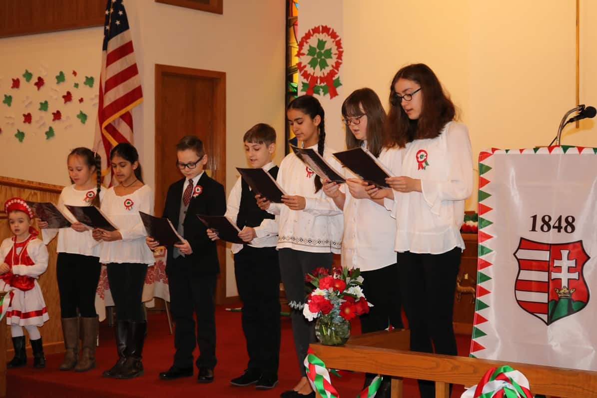 Szentkirályi Endre, az Egyesült Magyar Egyletek elnöke üdvözlő beszédében szintén méltatta a clevelandiek értékőrző tevékenységét és az ünnepség lebonyolításában tanúsított összefogását. Az evangélikus egyház tagjai pl. a helyszínváltoztatás ellenére is vállalták részvételüket a műsorban, amelyre hetek óta készültek. A Nyitott Szívecskék iskolás csoport kedves összeállításában tavaszi dalokat és verseket hallhattunk, a Kis Magyar Kórus pedig Simon Judit vezényletével egyházi és hazafias dalokkal színesítette a programot. Pásztor Gréta, aki orgonán kísérte az amerikai és a magyar himnuszt, a műsor egyik legszebb pillanatával ajándékozott meg bennünket: Chopin Téli szél című etűdjét adta elő művészi virtuozitással. Az ökumenizmus jegyében a nyitóimát a házigazda, Nt. László Imre, a Nyugat-oldali Magyar Református Egyház lelkésze mondta, a záróimát pedig Ft. Kulcsár Sándor, a Clevelandi Magyar Bethánia Baptista Gyülekezet lelkipásztora.