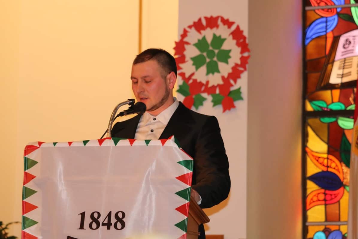 Ezt a gondolatot fejtette ki ünnepi szónoklatában Bőjtös László tiszteletbeli főkonzul is, aki a történelmi események felidézése után arról beszélt, hogy a szabadság fogalma, amelyért őseink az életüket adták, és ma már számunkra alapvető emberi jog, nem volt mindig egyértelmű az elmúlt 171 évben. Mégis mindig az a hazaszeretet adott hitet a nemzetnek, amely a márciusi ifjak szabadságvágyában öltött testet, és ebből kell erőt merítenünk ma is az előttünk álló feladatokhoz, éljünk bárhol a világon. „A lecsonkított állam határai nem a nemzet határai; kapcsolódásunkat nem az aktuálpolitika, hanem az örök magyar értékek lelki és szellemi hálózata határozza meg: a kultúra, a történelem és a közös nyelv” – hangsúlyozta.