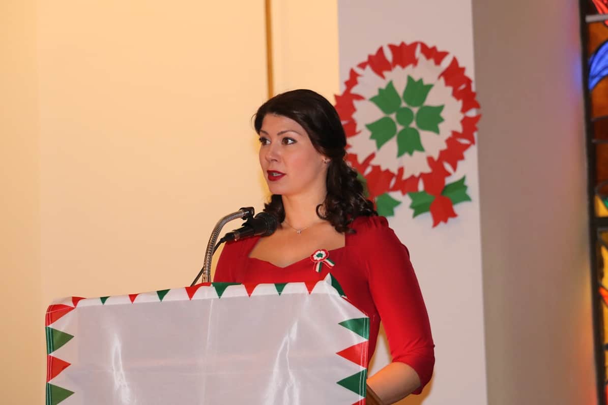 Dr. Bencsik Zita, az ünnepség vendégszónoka köszönetet mondott a színvonalas műsorért, és kifejezte háláját a clevelandieknek azért is, hogy itt tanulta meg, „mit jelent úgy élni a mindennapjainkat, hogy a háromszínű trikolór rózsa minden nap felkerüljön a szívünk fölé”. Emlékeztetett arra, hogy ’48 szabadságeszménye táplálta az ’56-os forradalmat, majd azt a soha nem szűnő reményt, hogy Magyarország megszabadulhat a rab nemzetek igájából, ami 1989-ben következett be. A szabadság 30. évfordulóját ünnepeljük tehát, amelyhez kapcsolódóan a kormány ez év március 15-től kezdődően emlékidőszakot hirdetett. „Egy nemzet akkor életképes, ha erős identitással rendelkezik, tisztában van a múltjával és van világos jövőképe” – mondta főkonzul asszony. Végül Kossuth Dunai Szövetség tervét idézve, történelmi kontextusba helyezve elemezte Magyarország jelenlegi helyzetét, amely a májusi európai parlamenti választás kapcsán közös felelősségként áll előttünk. „Forradalmaink arra is figyelmeztetnek, hogy a szabadság nehezen megszerezhető és könnyen elveszíthető kincs” – zárta gondolatait.