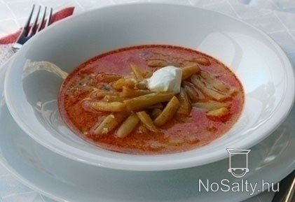 Amikor a levesben a hozzávalók majdnem megfőttek akkor kevés hidegvízzel simára kevert paprikás rántással besűrítjük, és újból felforraljuk. Végül a tejfölt óvatosan állandó keverés mellett egy merőkanál levessel elkeverjük és beleöntjük a levesbe.