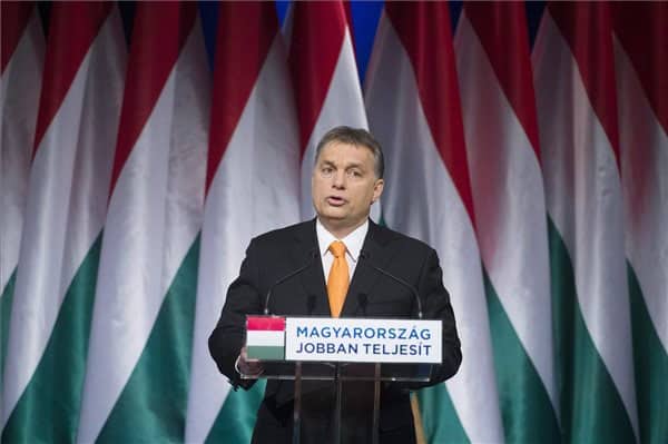 Budapest, 2014. február 16., vasárnap (MTI) – Orbán Viktor miniszterelnök szerint Magyarország egy nagy, felívelő korszak küszöbén áll, ezért az április 6-i parlamenti választáson újra meg kell mutatni: “erősek és egységesek vagyunk”. A kormányfő vasárnapi évértékelő beszédében azt is mondta, senki nem gondolta volna néhány éve, hogy Magyarország képes lesz a saját lábára állni és az uniós átlagot meghaladó növekedést elérni.