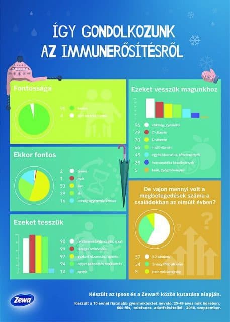 A Zewa mindent megtesz azért, hogy segítse a családok mindennapjait. Az Ipsos kutató intézettel együttműködve, készített egy 600 fős felmérést a kisgyermekes anyukák körében, hogy az eredménnyel rávilágítson az őszi-téli megbetegedések gyakoriságára, és ezek megelőzésének lehetséges alternatíváira. A kutatásból kiderült, hogy a magyar családok körében nagyon fontos a gyermek immunrendszerének erősítése, szinte 100 százalékuk kiemelten fontosnak tartja annak normál működésen felüli támogatását.