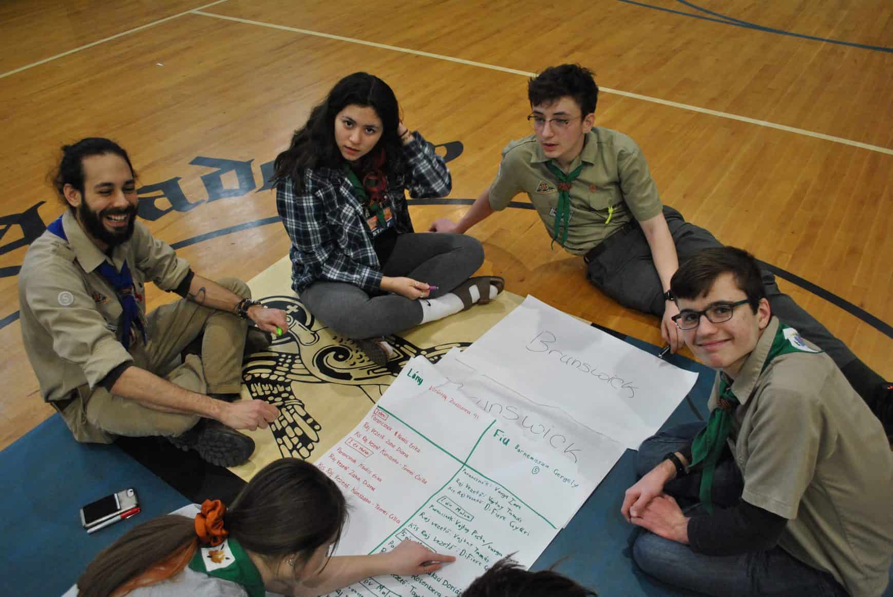 A vasárnap délelőtti programok keretein belül, az előző évekhez hasonlóan az őrsvezetők először kidolgozták, hogyan és milyen vezetőkkel képzelik el csapataikat 1, 5 és 10 év múlva, és hol látják magukat benne, ha már addigra a jelenlegi parancsnokok elmentek a csapattól. Ez mindig egy hasznos tervezés, és nagy öröm látni, hogy milyen lelkesen tekintenek csapataik jövőjébe, ezáltal is motivációt szerezve a folyó munkákhoz. Így, hogy 13 csapat volt jelen, a csapatok együtt is továbbfejlesztették a terveket és a körzeteik felépítését is megvizsgálták, mit lehetne alakítani a jelenlegi beosztásokon. A következő kihívásuk pedig az volt, hogy a nagy képet nézve, Dala Irén cscst, megkérte a cserkészeket, “Építsünk kerületet“ azaz, gondolják végig fiatal vezetőink a jelenlegi észak-amerikai területi beosztást és, hogy az ő városuk milyen regionális kapcsolatokat tudna tovább fejleszteni más városok csapataival. Reméljük, hogy pl. az egyetem miatt más városba költöző cserkész diákjainknak igy az is majd megfordul a fejében, hogy a szomszéd helyiségben hol folytathatná a cserkészkarrierjét is. Vagy esetleg hol indíthatna új csapatot, ha éppen olyan helyre jutna ahol vannak magyarok, de nincs magyar cserkészcsapat.